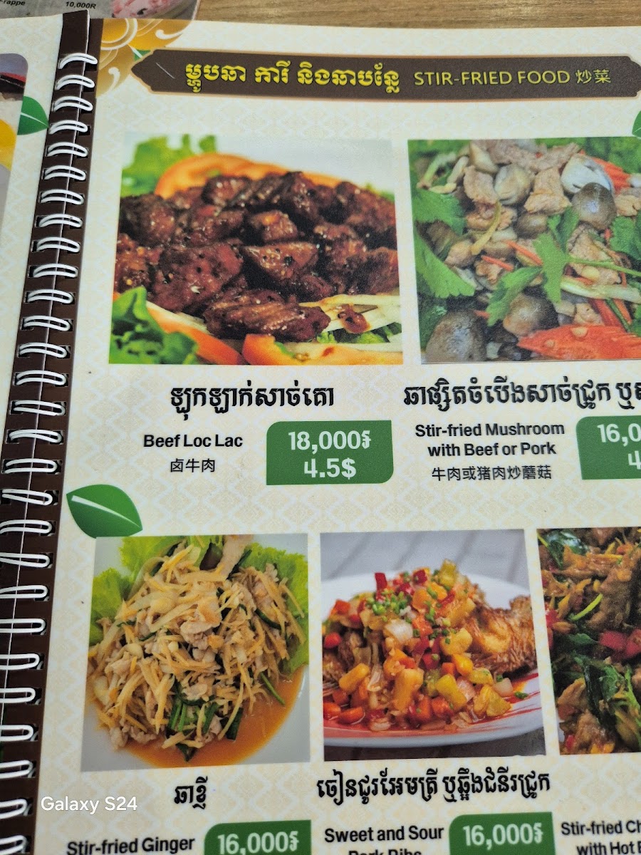 The food here is deeply rooted in Khmer-style cooking, with signature dishes that stand out for their balance and familiarity. The Preserved Fish Omelet is a real highlight, offering bold, savory notes that feel authentic and satisfying. It pairs well with simple sides and gives a clear idea of how traditional ingredients are respected in the kitchen. Another favorite on the menu is the Fried Rice with Pork, which is hearty without being heavy, making it a reliable choice for dinner. For something lighter or refreshing, the Icelatte fits perfectly, especially if you’re easing into a longer meal or just taking a break from the heat.